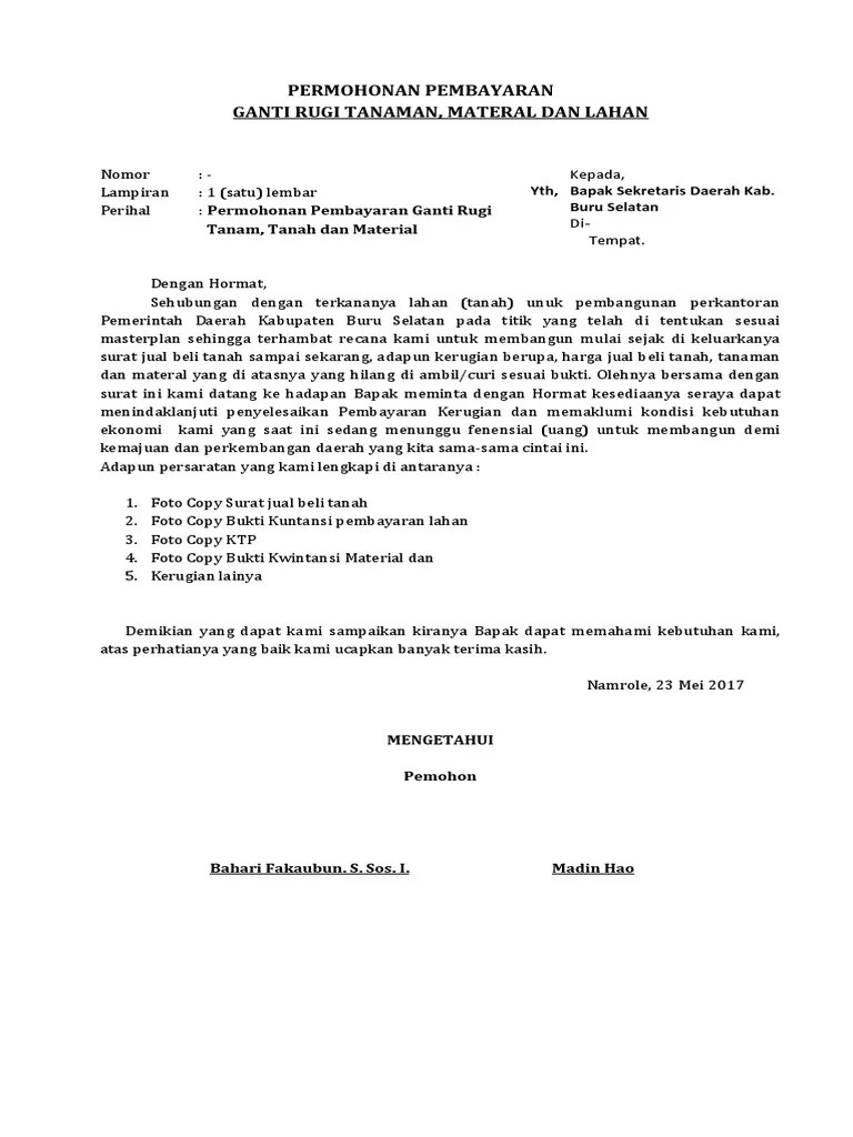 contoh format "surat pernyataan penguasaan fisik bidang tanah". contoh surat pernyataan tidak menuntut ganti rugi tanah contoh seputar surat. Seperti kita ketahui bahwa lahan garapan yang berada di area register hutan lindung hanya boleh digarap dan tidak boleh dijual belikan maka dari itu apabila tanah kebun bermaksud di pindah tangan diperbolehkan dalam bentuk ganti rugi lahan atas tanaman yang telah di. contoh surat keterangan pemakaman dari desa. contoh surat permohonan perubahan nama rekening bank sekolah.